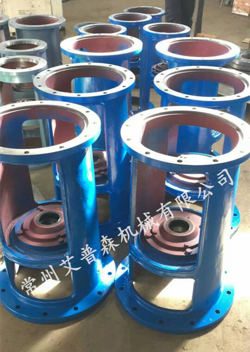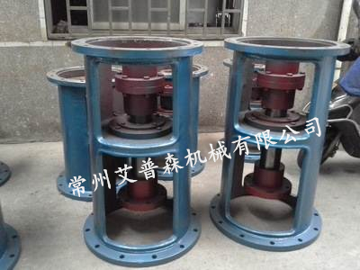 2、無支點機架 減速機機架本身無軸的支承點,攪拌軸是以減速機輸出軸的兩個支承軸承為受力支點,適用于傳遞小功率、不受或只受較小軸向負荷、攪拌不太強烈的攪拌裝置。攪拌軸與減速機的聯接必須用剛性聯軸器,特別是以JQ型夾殼聯軸器或SF型三分式聯軸器為最佳。 減速機支架(附圖2)